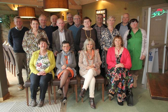 Dit feest had twee jaar geleden al moeten plaatsvinden, maar werd toen uitgesteld wegens de coronamaatregelen. Op de foto herkennen we Guido Vermander, Marie-Christine Turck, Lieve Calmeyn, Marc Haeve, Guido Lammerant, Johny Maeckelbergh, Therèse De Jaeger, Leon Hillewaere, Rik Cailliau, Josée Deboeuf, Roos Vanlauwe, Johan Veryser, Nadine Lamaire, Ginette Desplenter, Frans Luca en Odette Desplenter.