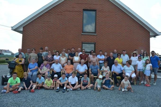 Ook dit keer was het een zomerse dag zodat alle feestvierders er met een brede glimlach bijliepen. De organisatoren van dit gezellige buurtfeest zijn Erik Misplon, Jacques Spiessens en Pol Vande Maele. Het buurtfeest krijgt telkens zijn beslag op de hoeve De Hiel van Pol Vande Maele. Maar liefst 70 buurtbewoners en vrienden van de organisatoren schreven zich in voor het feest dat bestond uit gezellig aperitieven gevolgd door een heerlijk buffet met warme beenhesp. Ook een twintigtal kinderen genoten mee van het feest, want op de hoeve van Pol konden ze na het smullen gezellig ravotten. Jaarlijks wordt er dan ook een herinneringsfoto gemaakt waarop alle aanwezigen graag staan. (CLY/foto CLY)