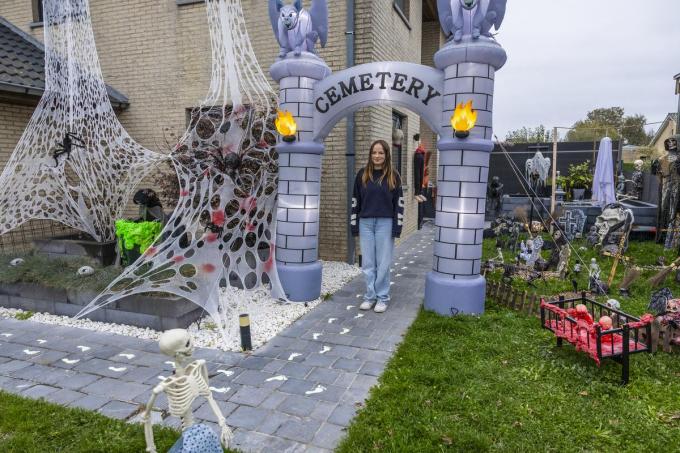 In de Kasteeldreef 57 valt het nauwelijks te missen: het huis van Bianca Devos is opnieuw omgetoverd tot een waar griezelparadijs. De voortuin puilt uit van skeletten, spinnen en angstaanjagende figuren, en ook binnen is geen hoekje onversierd gebleven.