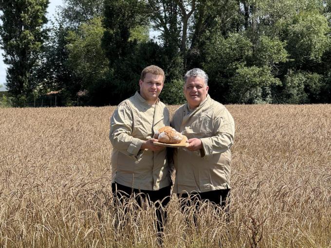 “Dit is een veld met biologische spelt, die we straks in ons brood zullen verwerken”, vertellen Luc (53) en Guillaume (24) David.