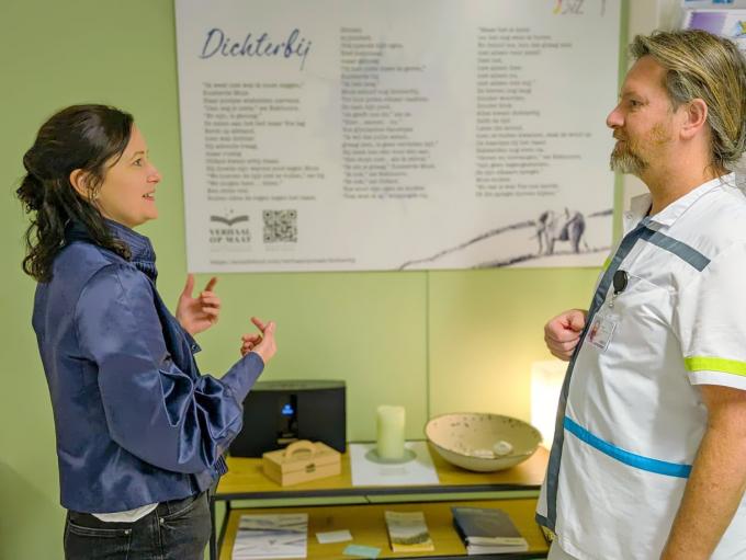 “Palliatieve zorg is meer dan medische zorg”, benadrukt hoofdverpleegkundige Kobe Sercu. “Het gaat over nabijheid, luisteren en aanwezig blijven. Dichterbij verwoordt en verklankt wat vaak stil blijft.”