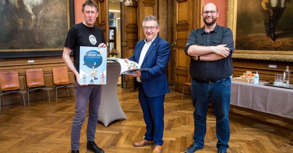 “Toen ik voor het eerst het beeld zag van ‘Dictator Dirk’ en de auteurs mij vroegen of ik daarmee kon leven, heb ik onmiddellijk geantwoord dat ik zeker geen last had van een strip met de burgemeester in een hoofdrol. Ik vroeg hen wel hoe ze erbij kwamen mij als ‘dictator’ te bestempelen. Volgens mij strookt dit niet met mijn karakter. Dit werd door de auteurs bevestigd . Ze vonden het leuk om mij een titel te geven die niet past bij mijn democratische ingesteldheid: het zijn dan ook cartoons”, vertelt de burgemeester.