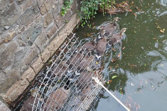 “De dieren zaten vast onder een brug en aan de ene kant was deze afgesloten met een draad en aan de andere kant zaten de jongen ganzen vast achter een dam”, vertelt de brandweer. “De kleintjes konden langs geen enkele kant meer weg.”