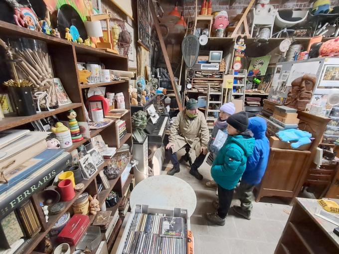 Een van de acht haltes was in mijn vintage-garage in de Ontvangerstraat waar ze bij dr. Kroepoek en zijn eega Julia -acteursduo Geert & Lieve – enkele tips konden lospeuteren. Het jong geweld smulde ervan en het was vooral telkens de lach van die pagadders die me een warm nostalgisch gevoel gaven. De ijskou leek hen niet te deren, de sneeuw evenmin. Geen enkel kind hoorde ik klagen van de lage temperaturen. Puur op kinderlijke adrenaline speurden ze naar de moordenaar.
