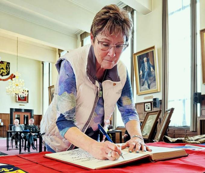Haar vader, Edmond Hugh Braden, maakte deel uit van het 12de Canadese Manitoba Dragoons dat Blankenberge op 9 september 1944 bevrijdde. Bij de bevrijding ondertekenden de Canadese troepen in het toenmalige stadhuis het gulden boek. Nu, bijna 80 jaar later, werd het opnieuw ondertekend door de dochter van een van de bevrijders. “Een bijzondere dag in de Blankenbergse geschiedenis”, klonk het.