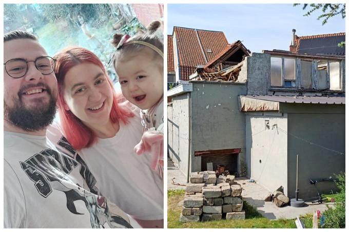 Het gezin van Luna (30) en Kenny (33) en hun tweejarig dochtertje Helena kregen de schrik van hun leven toen op 6 mei ’s avonds een deel van het dak van hun huis totaal onverwacht instortte. De schade was zo groot dat de woning tijdelijk onbewoonbaar werd verklaard. Er was geen gas of warm water meer en de situatie was onveilig. Intussen ligt er een nieuw plat dak op en zijn ze weer thuis. Toyah (32), de zus van Luna, startte een online steunactie op.