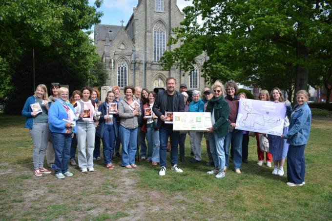 Als afsluiter van dit netwerkevenement werd aan de Heilige-Kruisverheffing- en-Sint-Jozefkerk een nieuw kunstwerk ingehuldigd, in aanwezigheid van kunstenares Katrijn Vanaelst en schepen van Welzijn en Sociale Zaken Pablo Annys. “Het kunstwerk dat we inhuldigen is een mooie veruiterlijking van de zorgzame buurt”, aldus de schepen. (CGRA)
