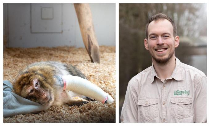 Aziza is één van de berberapen die een nieuwe thuis vond in De Zonnegloed. Ze werd gevonden nadat een eigenaar in Duitsland haar had achtergelaten. Aziza werd in 2013 opgevangen door Stichting AAP om daar te worden samengevoegd met soortgenoten. Ze vond in De Zonnegloed een permanente woonplaats. “We merkten dat Aziza haar arm dicht bij haar lichaam hield. Dieren proberen het vaak te verbergen als ze pijn hebben en ook bij Aziza was dat zo. Op de RX-foto’s was een flinke breuk te zien. Wanneer of hoe Aziza precies haar arm brak, weten we niet. Ondertussen heeft ze een gips gekregen, zodat haar arm goed kan herstellen.