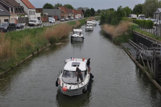 Pleziervaartuigen op het Lokanaal, daar kijkt niemand nog van op. Maar zaterdagnamiddag voeren tussen de Finele en Veurne maar liefst vijf plezierboten netjes achter elkaar.