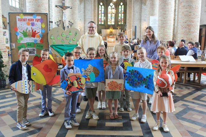Op donderdag 9 mei was het voor twaalf kinderen een feestelijke dag, want ze mochten voor de eerste keer naar de communie gaan. Priester Geert Rosseeuw ging de eucharistie voor, juf Annelien Logghe had de kinderen uitstekend voorbereid op deze mooie dag en Claude Vindevogel begeleidde de kinderen op het orgel. Op de foto Ozzgres Claeys-Castelein, Janne Debruyne, Henri De Burghgraeve, Fleur Declerck, Arthur De Cuyper, Lowie Deschoemaeker, Lieze Gryson, Otis Uleyn, Léon Van Damme, Delano Vandekerckhove, Thibault Van Loocke en Achiel Verhaeghe. (foto ACK)