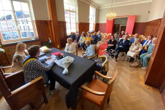 Schepen Mieke Syssauw (VOOR 8930) was onder de indruk en schatte de kranige dame, die onder meer haar vrije tijd doodt op haar tablet, enkele decennia jonger. Ook zij vroeg naar het geheim van het lange leven. Naast hard werken, had ze nog een opvallende tip. “Niet te veel water drinken. Ik ga graag gaan uiteten, maar dat is niet om water te drinken”, zei ze met een brede glimlach. (JDr)