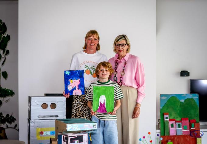 Het creatieve talent zit blijkbaar in de genen, want oma Sabine Eggermont (67) is ook een bezige bij in het kunstenaarswereldje. “Ik schilder graag meer abstracte werken en meestal met aquarel en acryl. Zolang ik hem ken, delen we dezelfde passie. En we delen ook met veel plezier materiaal en verf, want goed kunstmateriaal is niet goedkoop”, aldus Sabine. “Ik heb laatst nog een Toren van Pisa gemaakt, en ook een arcadevideospel uit karton en zilverpapier”, vult Emiel aan.