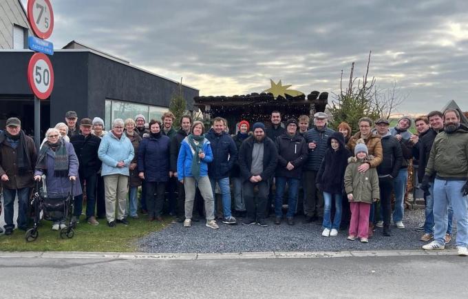 Vroeger stonden er heel veel in onze gemeente, maar dat is nu verleden tijd. Duizenden lichtjes werden aangestoken die de kerststal en de zes grote kerstbomen verlichtten. Een 50-tal wijkbewoners – met daarbij kunstenaar Luc Vanlerberghe, die 40 jaar geleden de beelden maakte – waren aanwezig op de officiële ingebruikname van deze kerststal. Iedereen kon genieten van een lekker drankje en hapje. (Patrick D./foto FODI)