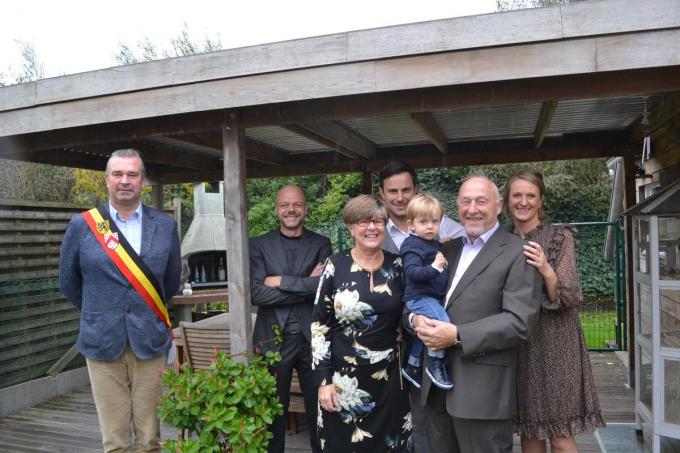 De familie ondertekende het guldenboek. De burgemeester las het gelukwensentelegram van de vorsten voor en overhandigde het geschenk van de gemeente. Een familiefoto mocht op zo’n moment niet ontbreken. (MVD)