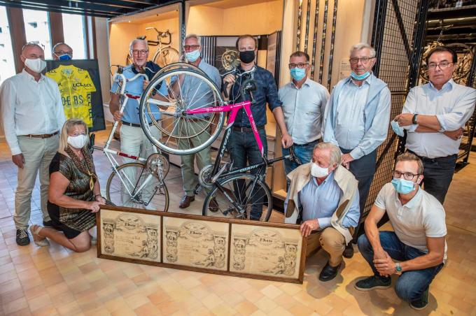 De broers Blanckaert stellen zowaar een fiets van Eddy Merckx uit 1968 ter beschikking. “Onze pa heeft die afgeschreven fiets van Eddy Merckx gekocht aan Guido Reybrouck”, zeggen de broers. “Pa heeft er mee gereden maar hij heeft het naamplaatje van Eddy onmiddellijk met tape afgeplakt. Hij was veel te bang dat zijn fiets zou gestolen worden als men zag dat het een originele fiets was waarmee Eddy Merckx heeft gekoerst.”