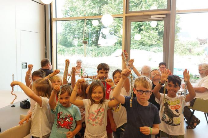 Op vriendschap staat geen leeftijd. Zo redeneerden de kinderen en begeleiders van het buitenschoolse kinderdagverblijf ’t Filoetje. Om aan de vriendjesdag een zinvolle invulling te geven, trokken ze naar het dagverblijf van BEN in de Kortrijksestraat voor een namiddag met de aanwezige senioren. Ze maakten er vriendschapsbandjes en sleutelhangers in macramé. De senioren waren de kinderen bijzonder dankbaar voor hun creatieve attenties. (foto JM)