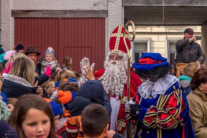 Iets na 14.30 uur manoeuvreerden vier witte paarden met koets sierlijk het binnenplein achter Huis Mulle de Terschueren op. Het moment voor de talrijk aanwezige kinderen met ouders, grootouders of jeugdvereniging om uitbundig te beginnen zwaaien en roepen naar de Sint die met zijn meegereisde pieten in de koets zat.