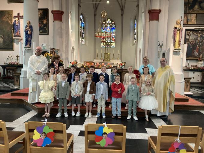 Op de foto zien we juffen Petra en Vanessa samen met hun leerlingen v.l.n.r.: Oone Verhooghe, Paulette Herkenrath, Lio Missinne, Gauthier Wittouck, Rémy Werbrouck, Cas Deneweth, Edward Kerckhove, Camille Gryspeerdt en Marieke Vander Ougstraete. Vooraan zien we v.l.n.r.: Juliette Denolf, Marcel Degrande, Staf Rabau, Clément Delie, Daan Vandeputte, Jaron Crevits, Clément Borra en
