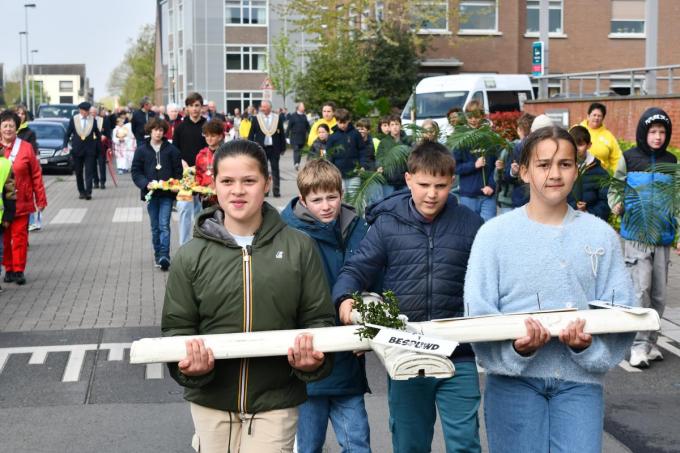 Om 10 uur vertrok de processie vanaf het binnenplein van woonzorgcentrum Zorg en Welzijn in de Gasthuisstraat en dit nadat er eerst een bezinningsmoment plaatsvond, verzorgd door pastoor Filip Debruyne. In processie trok men vervolgens, met de met palmtakken beladen ezel Hector, richting Sint-Michielskerk. Onderweg werd twee keer halt gehouden voor een kort bezinningsmoment.