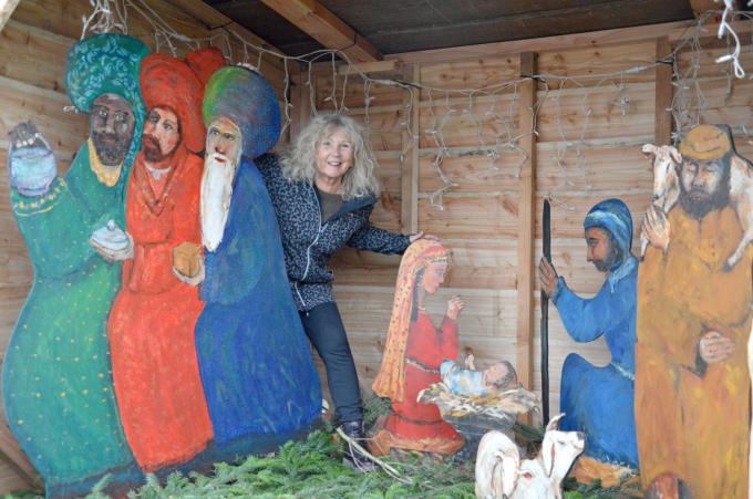 Maria, Jozef en het kindje Jezus vonden in deze donkere dagen opnieuw hun thuis in Zuienkerke. Ook een herder en de drie wijzen uit het oosten zijn van de partij. “Teamwork”, zegt Jenny, “Wim heeft de figuren netjes uitgezaagd en dan heb ik ze een laagje verf gegeven.”