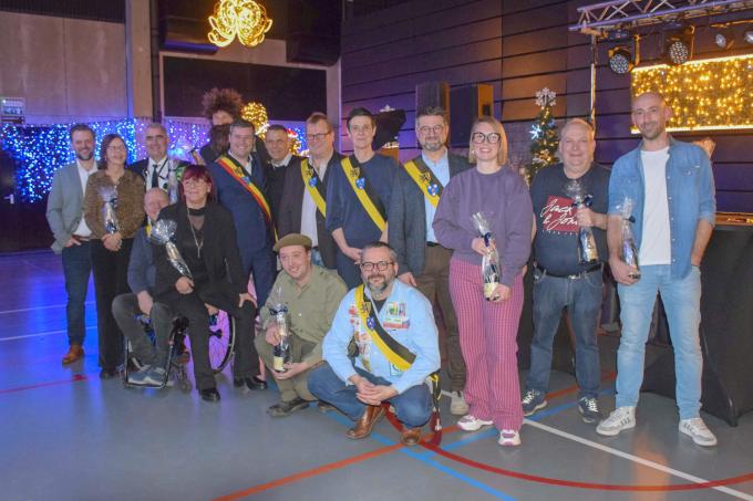 Naar jaarlijkse traditie organiseerde het lokaal bestuur in De Klokkenput een feest voor alle medewerkers van de gemeente, het OCMW, politie en onderwijs. De meeste aanwezigen hadden hun kledij aangepast aan het thema ‘Reis door de tijd’. Dat resulteerde in de aanwezigheid van figuren uit tal van historische tijdvakken, gaande van de Flintstones tot de Men in Black, die allemaal verwelkomd werden door twee koene ridders. Traditiegetrouw was er de huldiging van de personeelsleden die met pensioen zijn gegaan in 2025 of die 15, 20 en zelfs 30 jaar in dienst zijn. Na de maaltijd konden de gasten zich laten gaan tijdens een partijtje tafelvoetbal, boksbal of airhockey, en in de foyer was er zelfs een heuse karaokebar ingericht. (ED/foto Coghe)