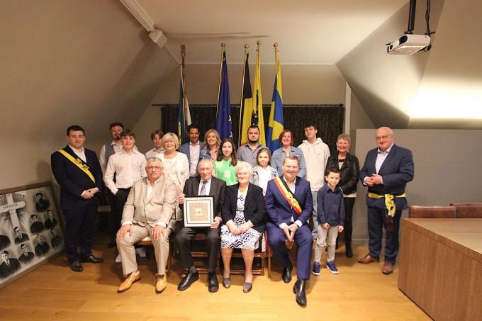 Samen met hun familie kwamen Georges Dewulf en Helena Tanghe op zondag 22 april naar het gemeentehuis van Houthulst waar ze ontvangen werden ter gelegenheid van hun diamanten bruiloft.