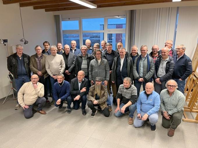 De oud-leerlingen van het voormalig Sint-Leocollege, schooljaar 1974-1975, kwamen in Oostkamp bijeen voor een reünie, de eerste na 50 jaar. Bij het bezoek aan het schoolgebouw gaf Sebastian Vande Ginste van Heemkundige Kring Oostkamp een historische duiding. Daarna volgde in De Raat een gezellig samenzijn. Op de foto zien we Luc Baeten, Peter Batsleer, Marc Bonne, Frank David, Pascal De Koninck, Marc De Craemer, Peter Demey, Bart Decrop, Peter De Vooght, Kurt Götze, Jan Huygens, Filip Huys, Henk Kerkaert, Karel Naeyaert, Dirk Paridaen, Dirk Rebré, Erik Sierens, Paul Talloen, Rony Van Compernolle, Jan Vandevyvere, Filip Van Heulebrouck, Johan Van Heulebrouck, Stefaan Vanhove, Geert Van Reybrouck, Peter Van Reybrouck, Ben Van Roose, Wim Verhelst en Nico Wille. (GST)