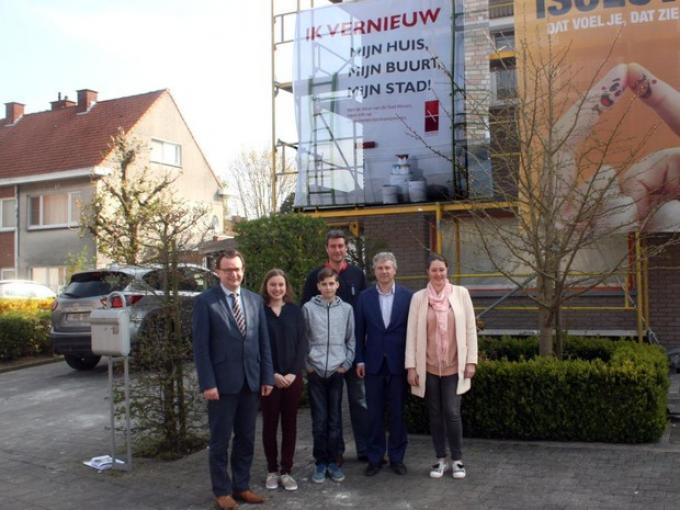 De stad heeft 10 spandoeken laten ontwerpen en aanmaken om de burger wat meer informatie te geven over het initiatief. De eerste schittert alvast aan het huis van Geert Vandorpe dat aanvankelijk buiten de zone viel en niet van een vergoeding genoot. “Ik was sowieso van plan mijn gevel te renoveren, maar deze premie is een extra stimulans. Ik ben trots dat ik de buurt naar voor kan trekken”, zegt Geert. Met de spandoeken wil de stad de premievoornemens aan het grote publiek beter bekendmaken.