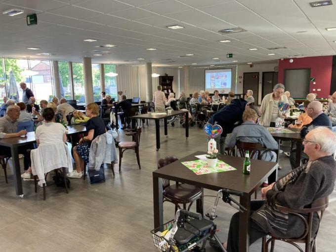 Margriet Windels en zus Rosa genieten ook zichtbaar van het samenzijn. “Ik woon in een assistentiewoning in Ter Meersch”, aldus Margriet. “Ik kwam hier al eens om iets te drinken, nu hoor ik dat ze elke vrijdag kaartnamiddagen organiseren. Dat wist ik niet en het interesseert me wel.”