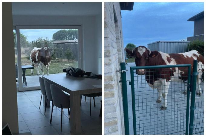 Een gezin uit Zwevezele kreeg deze ochtend wel heel onverwacht bezoek: plots stond er een koe op hun terras. De beelden werden alvast druk gedeeld, maar het dier is intussen terecht.