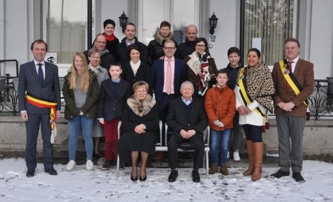Ze werden ter gelegenheid van hun gouden huwelijksjubileumsamen met hun familie ontvangen op het gemeentehuis. Het koppel kreeg er felicitaties van burgemeester en schepenen. (Foto Carlos)