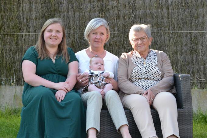 Bij de familie van Roza Dedeurwaerder en Roland Spiessens in Tielt is er sinds 4 februari opnieuw een viergeslacht in vrouwelijke lijn. We zien Laura De Clercq (26), Eveline Spiessens (52), Margaux Himpe (4 maanden) en Roza Dedeurwaerder (74). Het is niet de eerste keer dat er een viergeslacht is binnen de familie. Toen Laura De Clercq 26 jaar geleden geboren werd, zorgde dat namelijk ook al voor een viergeslacht, toen samen met haar overgrootmoeder, wijlen Maria Devlieger. Nu zet haar dochtertje Margaux de lijn dus verder. (SV/gf)