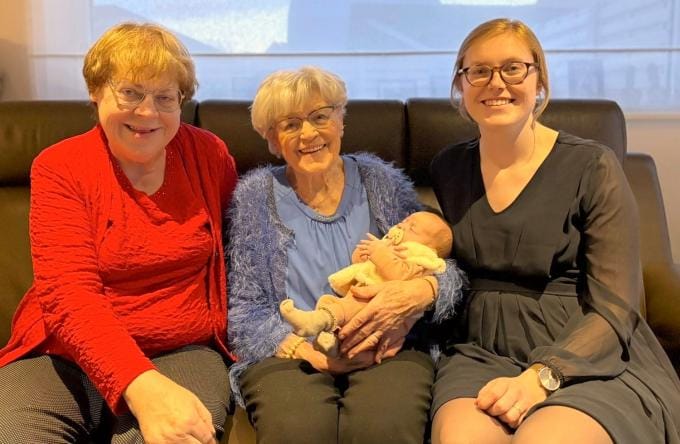 In Lo werd op nieuwjaarsdag een vrouwelijk viergeslacht op foto vastgelegd. Trotse overgrootmoeder is Odette Vansteelant (84) uit Loppem. Haar dochter Greet Strubbe (63) uit Lo is de fiere mama van Heleen Veramme uit Leisele. De kleine Lisette Moeneclay (5 weken) maakt het viergeslacht compleet. (KVCL)