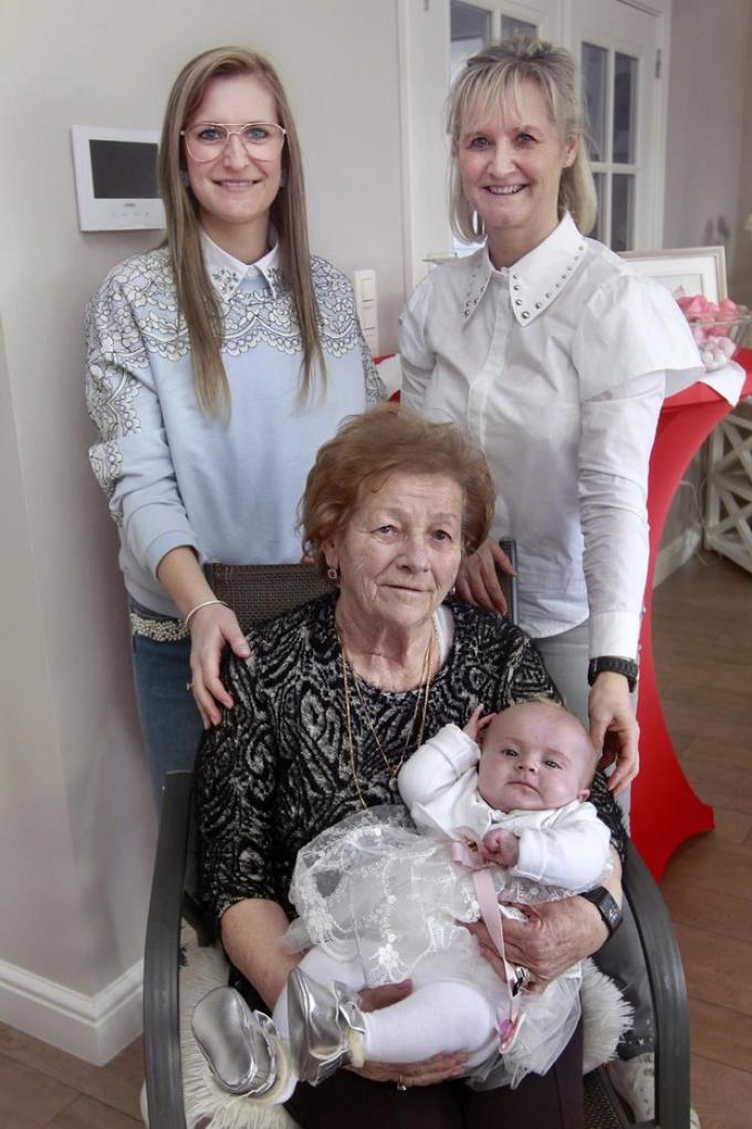Deze vier (jonge-)dames vormen een viergeslacht: Liliane Vincke (77) uit de Boterstraat in Roeselare, Dannina Deleu (54) uit de Bruggestraat in Torhout, Maxime Jansen (29) uit de Keibergstraat in Torhout en de kleine Juliette Beyaert (geboren 25 oktober 2017).