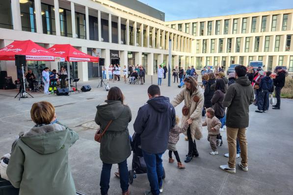 Kortrijk / Ziekenhuis Kortrijk / Ziekenhuis Zorgverleners laten het binnenplein van az groeninge klinken voor De Warmste Week 22 december 2025
