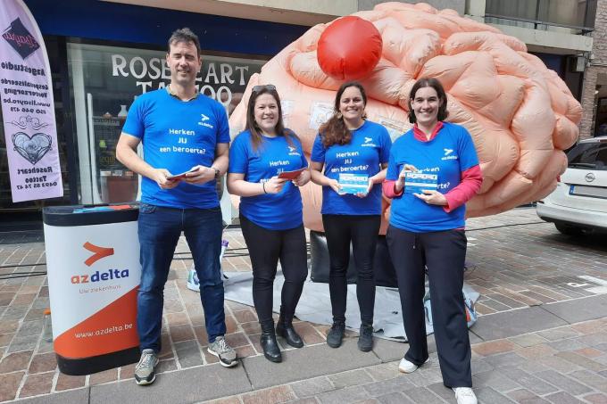 Met een grote, opvallende hersenballon werd tijdens de Torhoutse woensdagmarkt door een vierkoppige delegatie van het AZ Delta de aandacht van de voorbijgangers getrokken. Dat gebeurde naar aanleiding van de Europese Dag van de Beroerte.