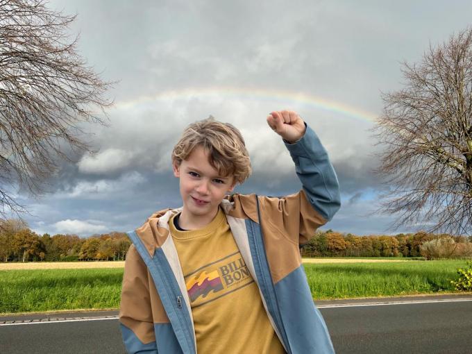 Na de vierde dag begon Jef iets wakkerder te reageren. Hoe hij erin geslaagd is, weten zijn ouders nog steeds niet, maar hij heeft toen op de één of andere manier water binnengesmokkeld en dat onder zijn kussen verstopt. “Hij staat op de intensive care bekend als de jongen met ongelooflijke onderhandelingstechnieken en survival skills”, lacht Emely. Na een week mocht hij naar de vierde verdieping van het kinderziekenhuis waar het vol patiëntjes lag met een specifieke aandoening. Op de tiende dag was het feest op de kamer want Jef kon voor de eerste keer plassen, een paar milliliter slechts, maar die betekenden zoveel. De regenboog die net op dat moment verscheen, benadrukte het unieke moment.