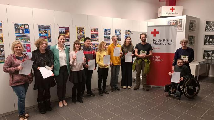 “Hopelijk moeten jullie de opgedane kennis nooit gebruiken.” Zo opende Nicole Vandecasteele, voorzitter van de Rode Kruis-Brugge, de brevetuitreiking van de EHBO-cursus. Daarna kregen de 15 geslaagden hun diploma. Dat waren Baert Peggy, Bui Minh-Phuc, Clément Van Daele, Daems Matthias, De Boom Xenia, De Coninck Tine, De Ruytere Michael, Deschuyteneer Rhune, Huys Marie, Lahti Laura, Toye Marion, Tysmans Gregory, Vanhoucke Lotte, Vanwalleghem Nadine en Wijs Dirk. De deelnemers leerden wonden verzorgen, bloedingen stelpen, omgaan met verstikking, breuken, ontwrichtingen, vergiftigingen, een hartaanval en een beroerte, en reanimeren. Info: www.rodekruis.be/afdeling/brugge. (SVK/gf)