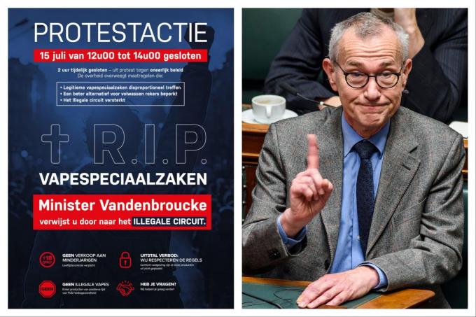 Vapebel, de sectorfederatie van handelaars in elektronische sigaretten, roept al haar leden op om vandaag tussen 12 en 14 uur de deuren van hun winkels gesloten te houden. In die winkels worden elektronische sigaretten – vapes – en toebehoren verkocht, zoals de vloeistoffen die in die vapes verdampt worden. Minister van Volksgezondheid Frank Vandenbroucke wil het aantal smaakjes van die vloeistoffen drastisch beperken en net dat is een doorn in het oog van Vapebel.