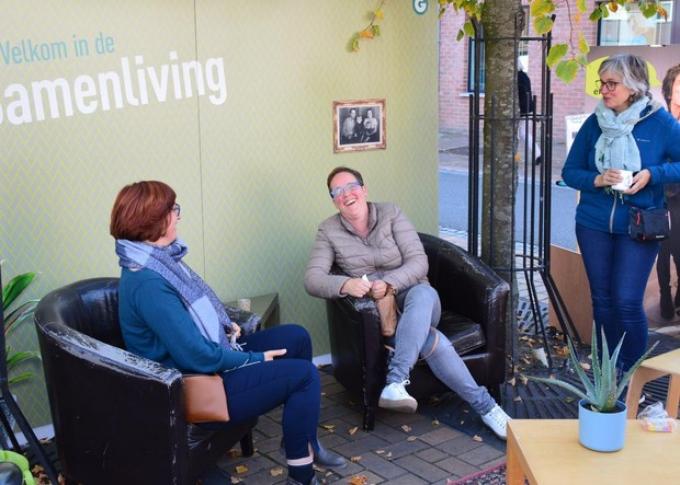 In het kader van de nationale ‘samenliving’-actie van Groen, nodigde de plaatselijke afdeling dit weekend de voorbijgangers uit om plaats te nemen in haar salon dat opgebouwd stond op het pleintje in de Schooldreef. Iedereen kon er terecht voor een spontane babbel.