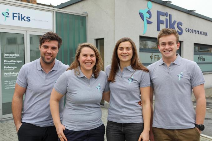 Osteopaat Amandine Raes (26), kinesist Robin Monteyne (28), podoloog Arne Verbanck (25) en psycholoog Hannelore De Beir (35) slaan de handen in elkaar met Fiks. Het koppel Amandine en Robin kwam ruim anderhalf jaar geleden in Gistel wonen en onderzocht de mogelijkheden om in de rand van Oostende een praktijk op te starten.