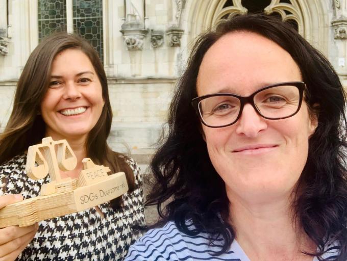 In het kader van de week van de duurzame gemeente, die van 18 tot 25 september plaatsvindt, nomineert Stad Brugge jaarlijks vijf ‘Duurzame Helden’. Burgemeester Dirk De fauw overhandigde dit jaar de ‘Peace-Award’ aan Hogeschool VIVES, en dit voornamelijk voor haar inzet op vlak van Globaal Engagement.