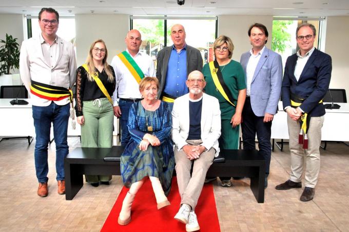 De 73-jarige Carlos Strobbe en 72-jarige Marie-Jeanne Van Hove werden plechtig ontvangen door het gemeentebestuur voor de receptie op het gemeentehuis van Olsene voor de viering van hun gouden bruiloft.