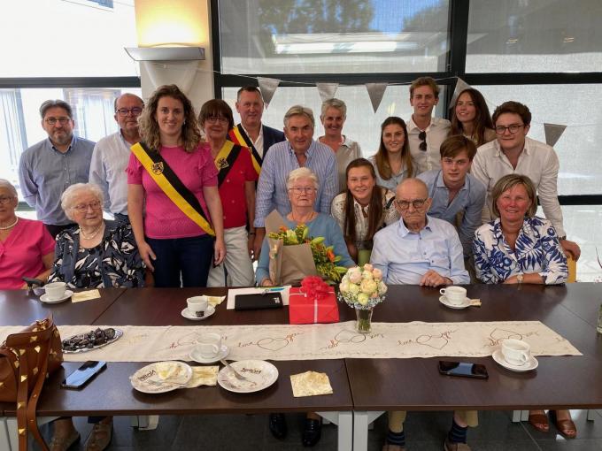 Vanmiddag vierden Albert Vanhee en Christiane Adam hun diamanten bruiloft in de cafetaria van het wzc Maria Rustoord, waar Albert verblijft.