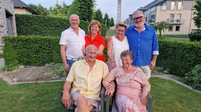 Ze ontvingen hun gezin, de buren, een delegatie van het schepencollege in de Cottereelstraat. Het koppel, beiden zijn 82 jaar, blikt terug op een leven vol werk, zorg en liefde. “Elkaar leren kennen na schooltijd en elkaar ontdekt op de boerderij”, schateren ze hartelijk. Nu vullen ze hun dagen met handwerk, klusjes, kruiswoordraadsels, koers kijken, fietsen en hun moestuin. Hun geheim? “Geven en nemen.” Met dochters Heidi en Inge, vijf kleinkinderen en achterkleinkind Finn is hun geluk compleet. (GV/foto GV)