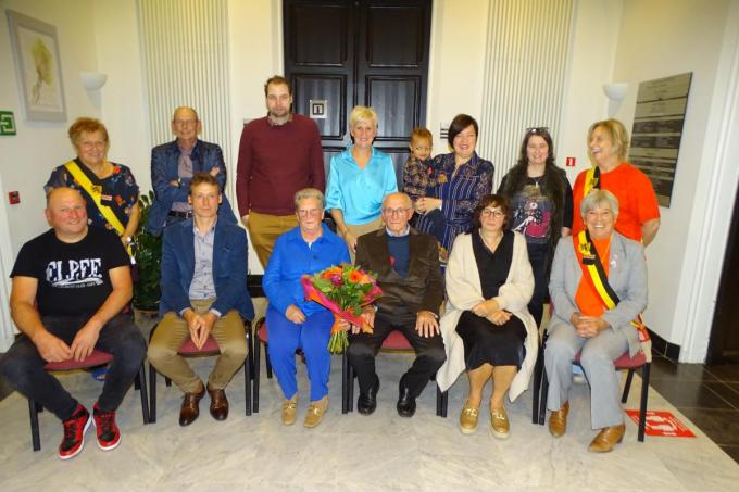 Robert Desmet en Antoinette Compernolle zijn met hun familie door het college van burgemeester en schepenen ontvangen in het gemeentehuis voor hun diamanten huwelijksjubileum.