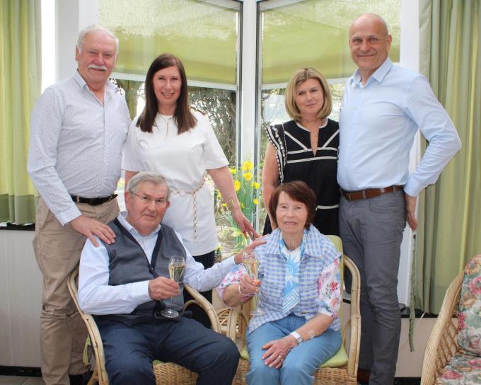 Het huwelijksgeluk van Nicole en Marcel werd bekroond met de komst van twee dochters. Mieke werd geboren in 1966; twee jaar later werd Bettina geboren. Zij zorgden op hun beurt voor vijf kleinkinderen en drie achterkleinkinderen. De gemeentelijke felicitaties werden overhandigd door burgemeester Kristof Pillaert, schepenen Lies Colpaert, Jan Lokere en Tomas De Meyer. (EVG)