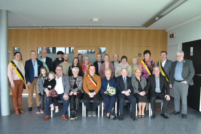 Katrien en Koen zijn hun kinderen. Burgemeester Louis Vanderbeken (CD&V) vertelt over de diamanten jubilarissen: “Ondanks jullie drukke leven, was er toch altijd tijd voor ontspanning. Jullie reisden graag naar Spanje met de caravan en Solange werkt graag in de tuin. Onze jubilarissen zijn sociaal en je kan ze wel eens terugvinden tijdens het kaarten bij de Vriendenkring van de Statiewijk en Okra Sellewie.”