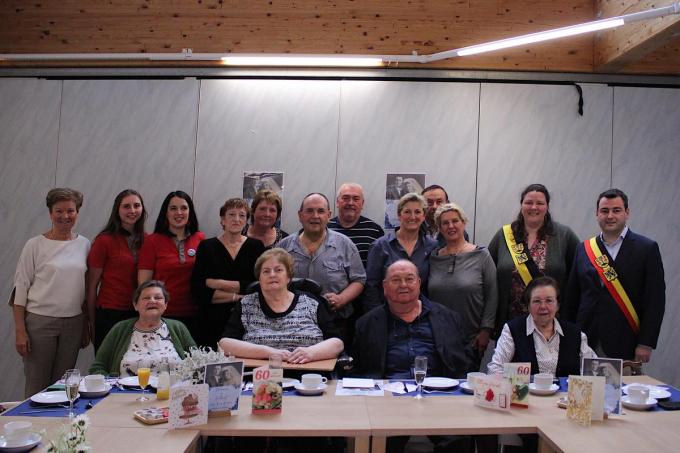 Gilbert Beeckaert (81) en Monica Maeckelbergh (80) vierden hun gouden huwelijksjubileum. Gilbert is geboren in Jonkershove en volgde na de gemeenteschool nog een jaar VTI in Ieper. Monica werd geboren in Klerken, ging er naar de kleuter- en lagere school tot haar 14 jaar en begon dan te werken in een visrokerij. Vervolgens werkte ze in de melkerij in Klerken tot haar huwelijk. Ook Gilbert startte met werken in de melkerij toen hij 16 was, daarna volgde hij nog twee jaar avondles en haalde het diploma B2. Zijn legerdienst vervulde hij in Duitsland en daarna werkte hij opnieuw in de melkerij en daarna nog een tijd bij de firma Despierre en bij de firma Covemaker. Na een verkering van vijf jaar huwden ze in Klerken op 4 april 1964. Ze woonden 2,5 jaar in bij de ouders van Monica om daarna in hun eigen nieuwbouw te trekken. Het gezin kreeg drie kinderen: Geert die samen met Ilse Verplancke in Rumbeke woont, daarna werd Martine geboren in 1967 maar ze overleed helaas in 1969. Drie jaar later werd opnieuw een dochtertje geboren dat dezelfde naam als haar overleden zusje kreeg. Martine is samen met Dominique, zij wonen in Jonkershove. Monica woont nu een jaar in RVT Cassiers waar ze het naar haar zin heeft, Gilbert bezoekt haar dagelijks en brengt haar telkens iets lekkers mee. Gilbert is een volksvriend en zijn motto is “een vriendelijke groet doet iedereen goed”. (ACK)