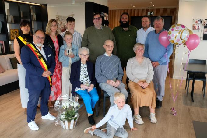 Burgemeester Peter Roose en schepen Michele Note kwamen naar Zuidburg om het platina paar geluk te wensen en boden hen in naam van het stadsbestuur een bloemstuk aan. Ook het koningspaar stuurde hun gelukwensen voor deze speciale gebeurtenis. Ze werden door de directie van Zuidburg in de bloemetjes gezet en mochten het glas heffen met hun medebewoners. (JTV)